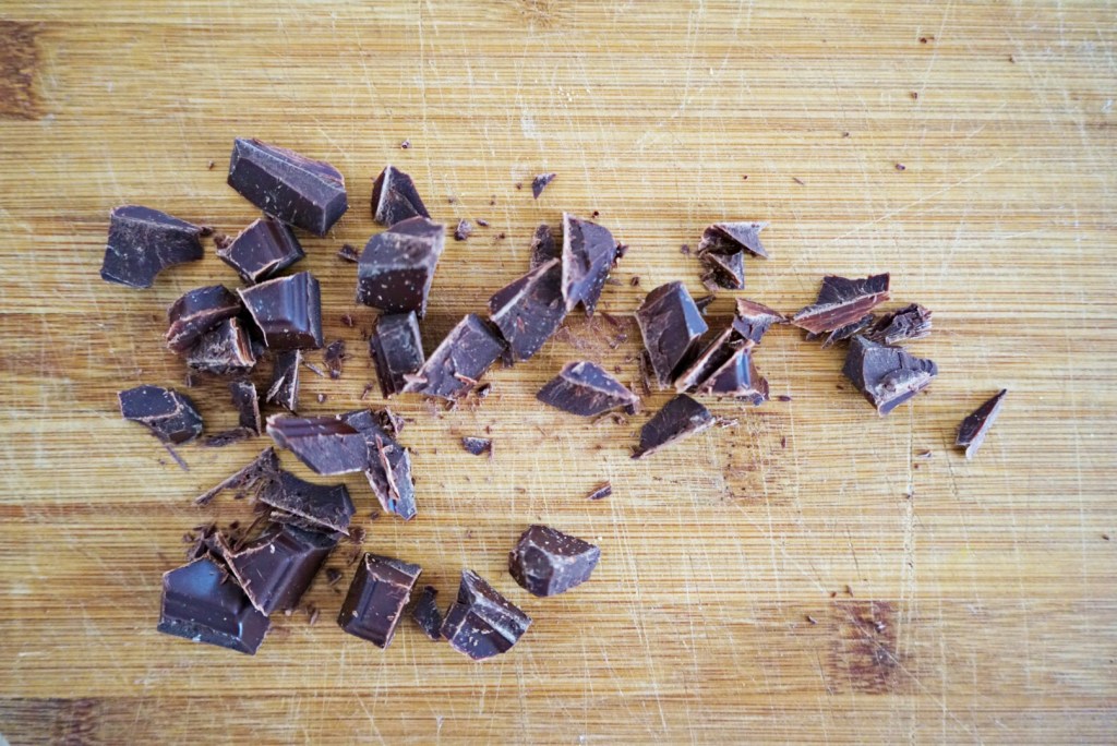 * Formez de petits tas sur la plaque de cuisson à l’aide d’une cuillère à café et ajoutez les copeaux de chocolats sur le dessus.